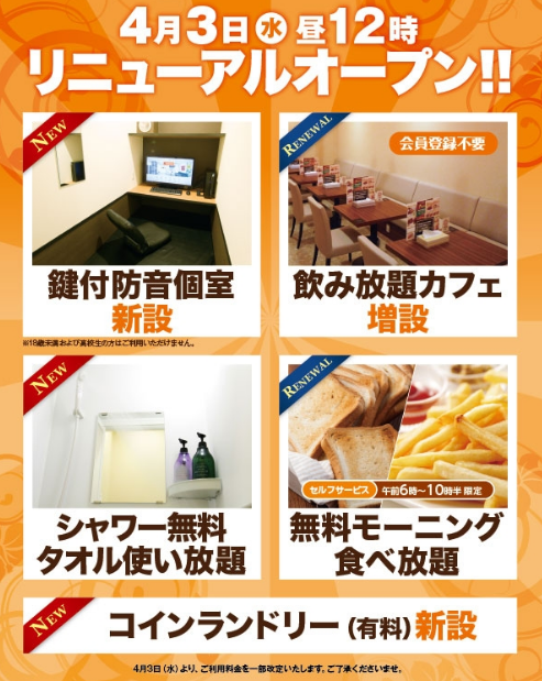 ・鍵付防音個室、シャワー、有料コインランドリー新設